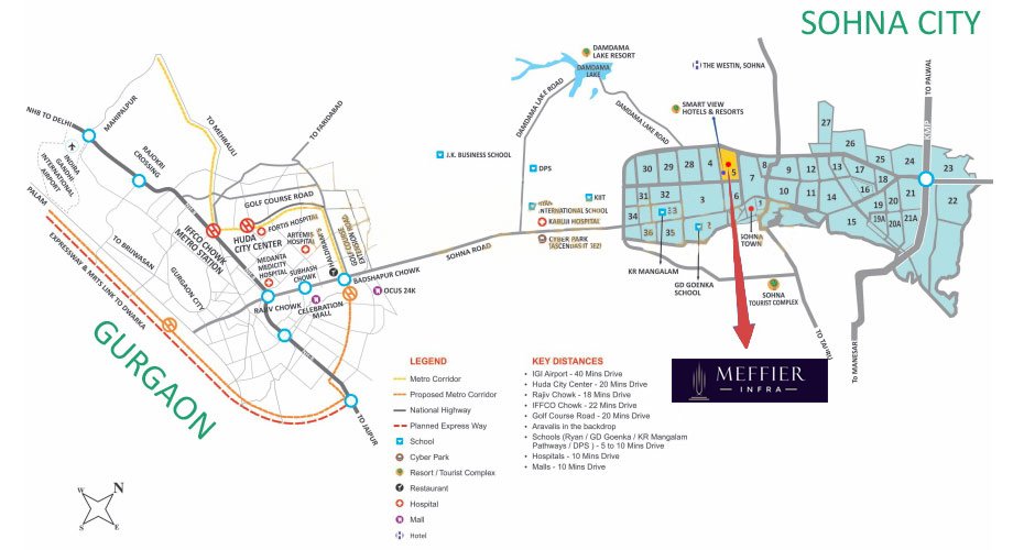 Meffier Garden Avenue in Sector 5, Sohna, redefines luxury living with low-rise 2 & 3BHK independent floors across 11 acres. Developed by Meffier Infra, it blends modern design, lush green surroundings, and top-tier amenities including a 40,000 sq. ft. clubhouse and 2-acre park. Strategically located near Gurugram Sohna Expressway with easy access to major roads, it offers a perfect mix of privacy, comfort, and connectivity.