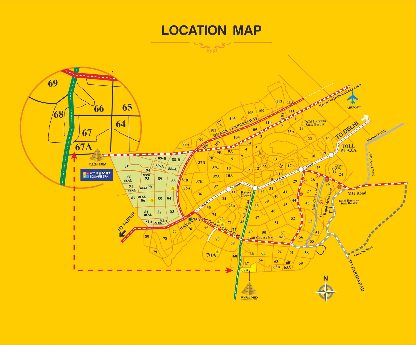 Pyramid Square 67A is a premium commercial project located in Sector 67A, Gurgaon. Designed to meet modern business needs, it offers retail shops and office spaces with world-class amenities. With excellent connectivity to Sohna Road and Golf Course Extension Road, the project ensures high visibility and footfall. Its strategic location makes it an ideal choice for investors and business owners. Pyramid Square 67A combines affordability with luxury, creating a perfect destination for growth