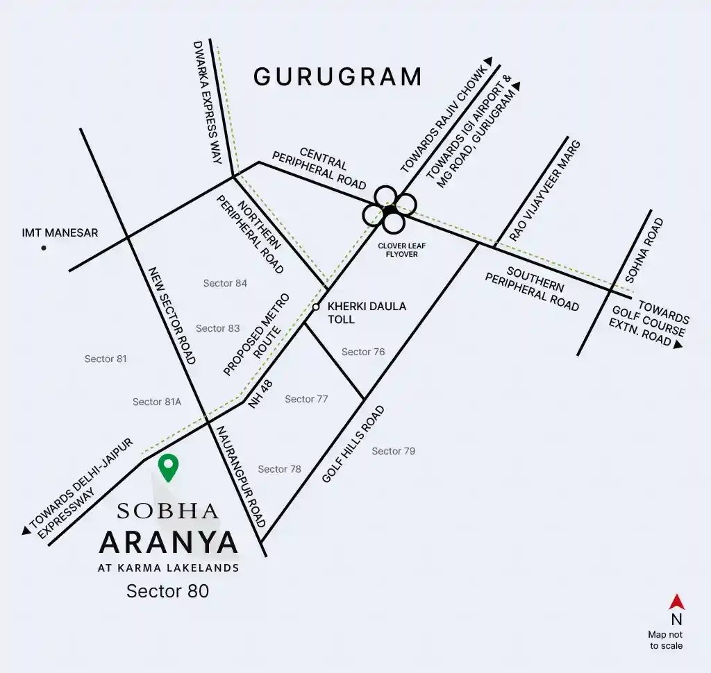 Sobha Aranya is a premium eco-luxe residential development in Sector 80, Gurgaon, a result of the visionary collaboration between SOBHA and Karma Lakelands. This project offers an unmatched blend of urban sophistication and nature’s tranquility, designed for a select few who appreciate sustainable, luxury living.